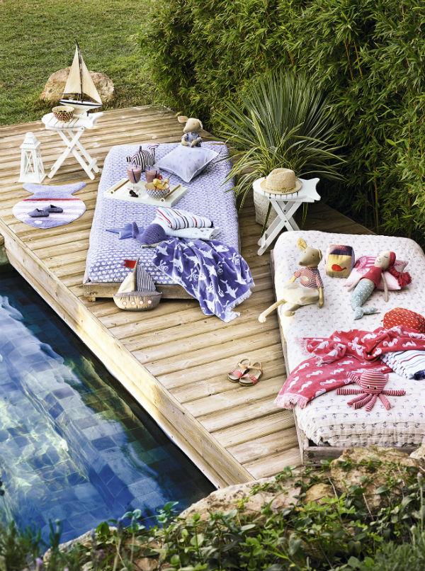 Tα σχέδια του θαλάσσιου κόσμου, ζώα και φυτά, δημιουργούν ένα σκηνικό αθωότητας όπου γοργόνες, χταπόδια και αστερίες παίζουν ανάμεσα στα αφρισμένα κύματα. Αυτή η κολεξιόν δημιουργεί μια σοφιστικέ αλλά χαλαρή ατμόσφαιρα: η πεμπτουσία Zara Home Kids.