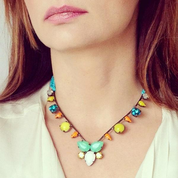 Η καλοκαιρινή συλλογή έχει πολύ χρώμα, με έμφαση στην ελληνικότητα και στηρίζεται στην τεχνική του ροζάριο μπερδεμένα με φυλαχτά, ημιπολύτιμες πέτρες.