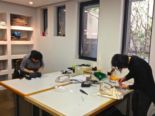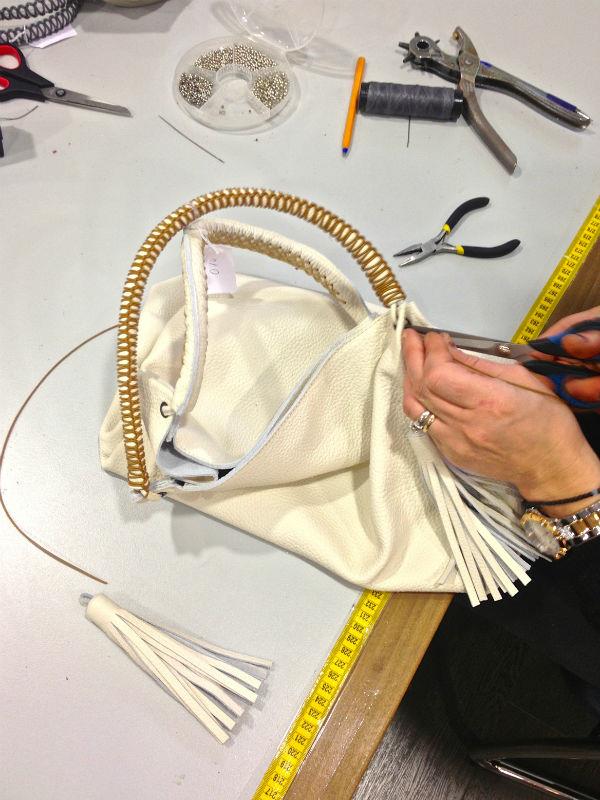 400 stiches και 300 κόμποι απαιτούνται για την δημιουργία κάθε τσάντας Callista. Κάθε τσάντα είναι αναγνωρίσιμη χάρη στις κεντημένες ραφές και στο πλεγμένο σε διαδοχικούς κόμπους δερμάτινο κορδόνι που αγκαλιάζει τις λαβές, στοιχεία που αποτελούν και το σήμα κατατεθέν του brand.