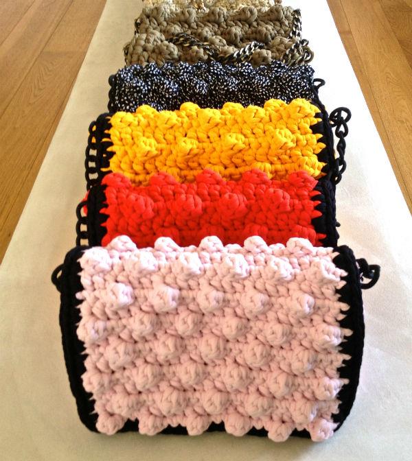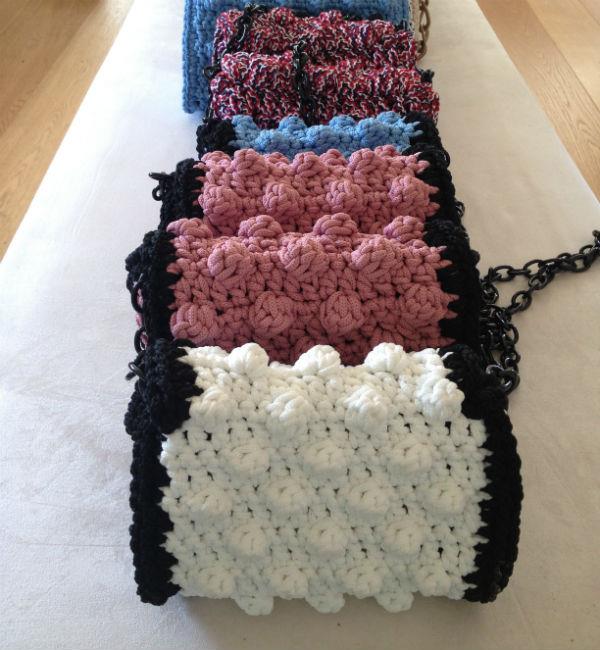 Ένα βελονάκι, δεκάδες υφασμάτινα κορδόνια και φυσικά τα χέρια της Ειρήνης και των βοηθών της, είναι όλα όσα χρειάζονται για να πλεχτούν τα minimal clutches και να δημιουργηθούν one of a kind τσάντες, που συνδυάζουν την ελληνική παράδοση με τις τελευταίες τάσεις της μόδας.