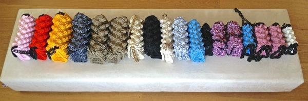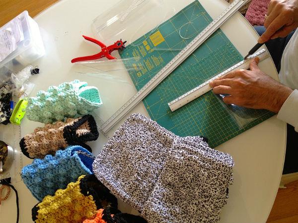 Κατόπιν πλέκεται το πρώτο δείγμα. Μπορεί να ξηλωθεί και να ξαναπλεχτεί πολλές φορές, μέχρι να έρθει στο σχήμα και το μέγεθος, που θέλει η δημιουργός του.