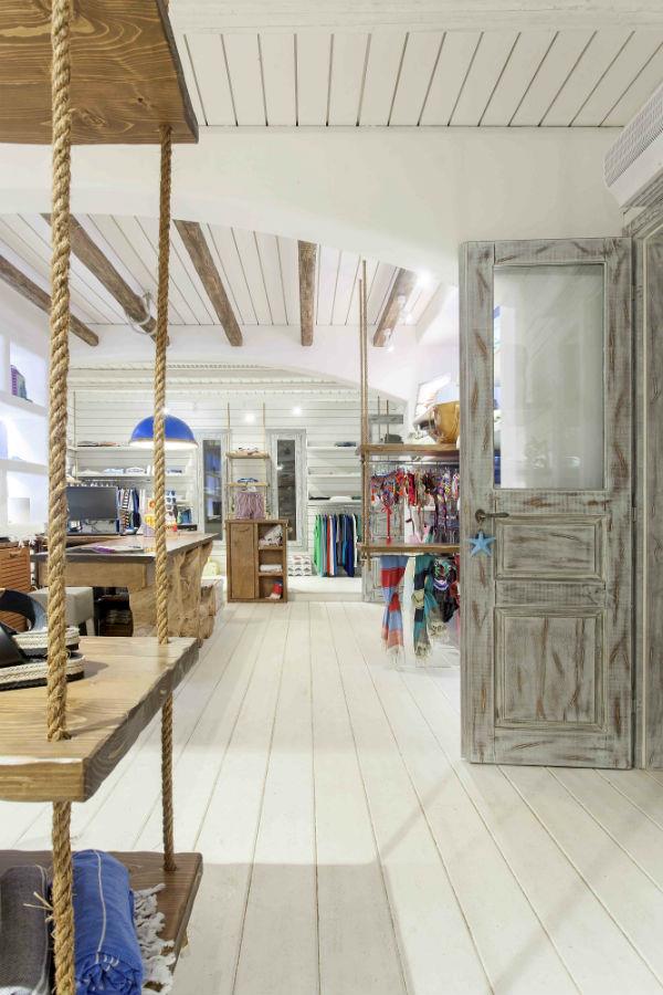 Εμπνευσμένη από τα καλοκαιρινά θέρετρα, η boutique χαρακτηρίζεται από το λευκό & μπλε χρώμα και το ξύλο, αντικατοπτρίζοντας έτσι με τον καλύτερο δυνατό τρόπο τον καλοκαιρινό της χαρακτήρα.