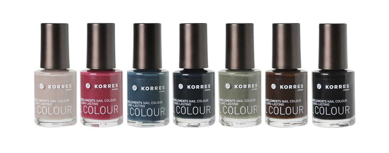 Το φθινόπωρο και ο χειμώνας αφήνουν το χρωματικό τους αποτύπωμα στη νέα συλλογή ΚΟΡΡΕΣ NAIL COLOUR. Οι αλλαγές της φύσης στο πέρασμα των εποχών, οι αποχρώσεις των φύλλων, οι τόνοι της γης, τα χρώματα των τοπίων - η έμπνευση για τα επτά νέα βερνίκια νυχιών.
