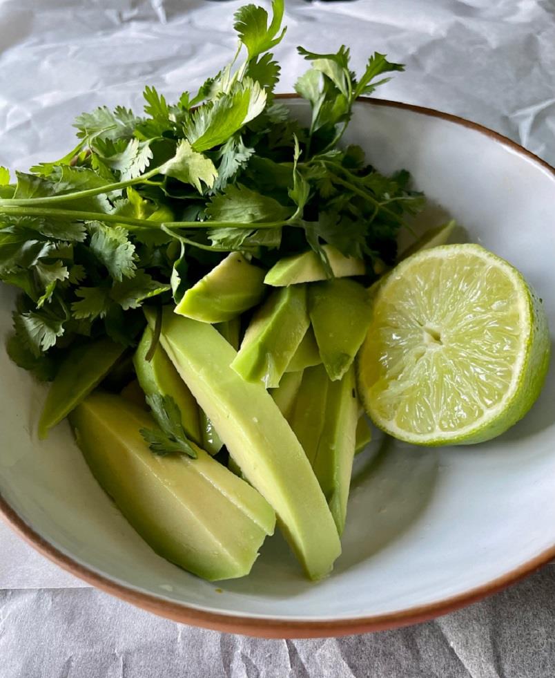 Φέτες avocado, lime, φρέσκος κόλιανδρος
