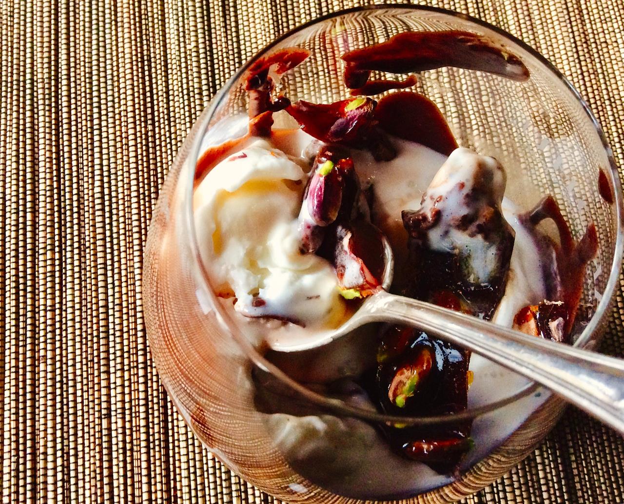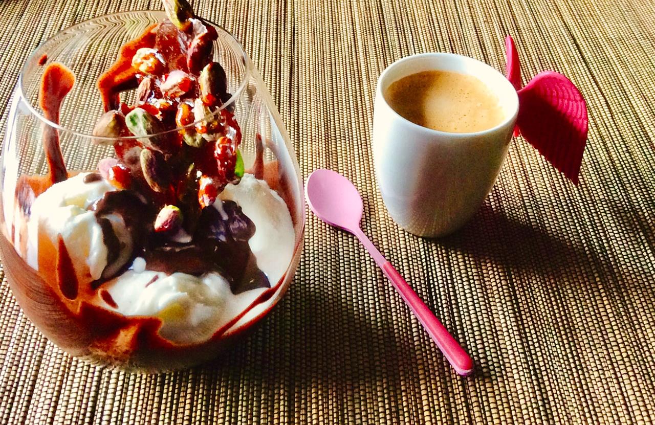 ΠΑΓΩΤΟ ΒΑΝΙΛΙΑ ΜΕ ΖΕΣΤΗ ΣΑΛΤΣΑ ΣΟΚΟΛΑΤΑ-ΚΑΦΕ & ΚΑΡΑΜΕΛΩΜΕΝΑ ΦΙΣΤΙΚΙΑ