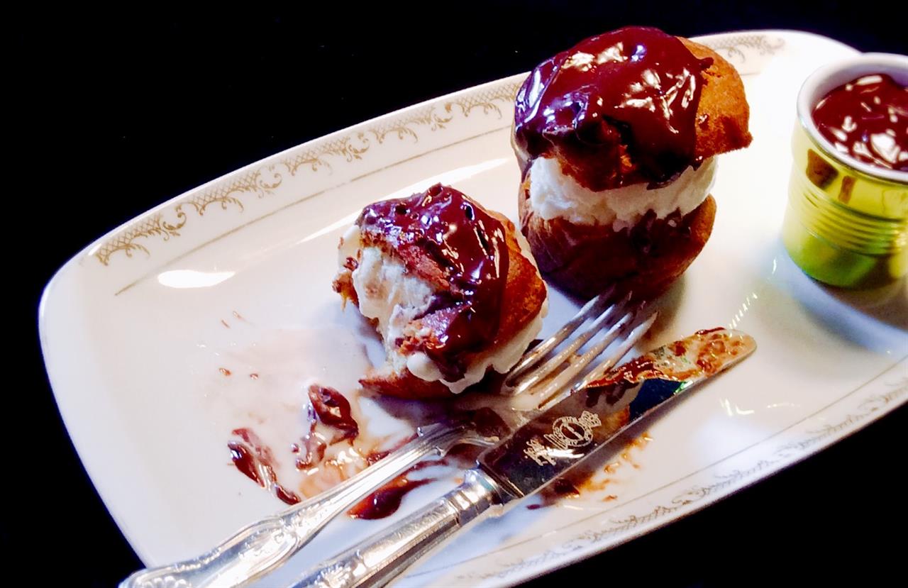 PROFITEROLE ΜΕ ΠΑΓΩΤΟ ΒΑΝΙΛΙΑ & SAUCE ΖΕΣΤΗΣ ΣΟΚΟΛΑΤΑΣ