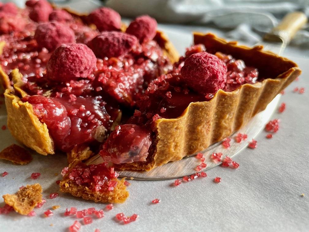 Ο Paul Bocuse, λοιπόν, εμπνεύστηκε από το προϊόν-φάρο της ιδιαίτερης πατρίδας του και έφτιαξε την τάρτα με τις ροζ πραλίνες. Η συνταγή είναι απλούστατη, με ελάχιστα υλικά και, παραδόξως, καθόλου λιγωτική, αντιθέτως από την αρχική μου εντύπωση πως θα είναι πολύ γλυκιά.