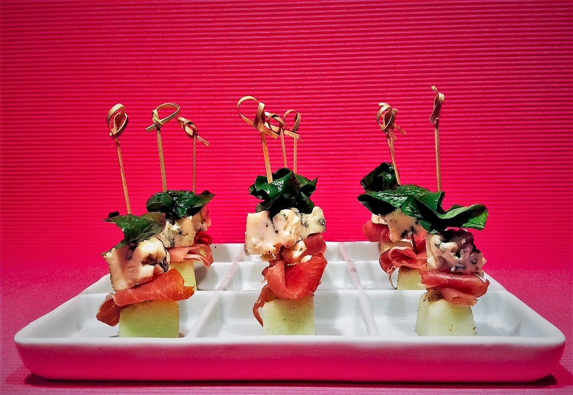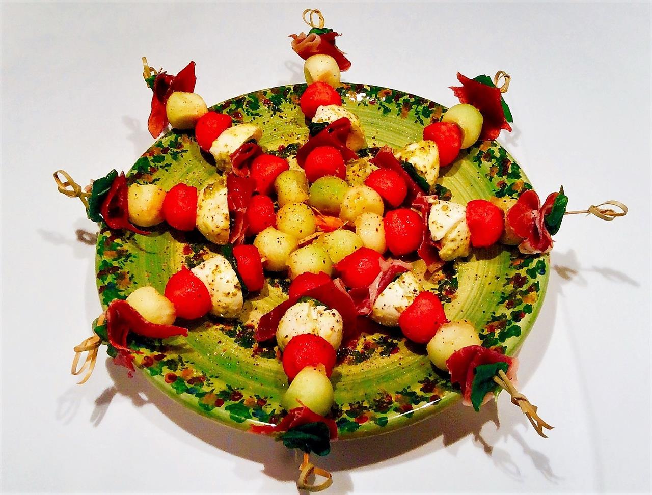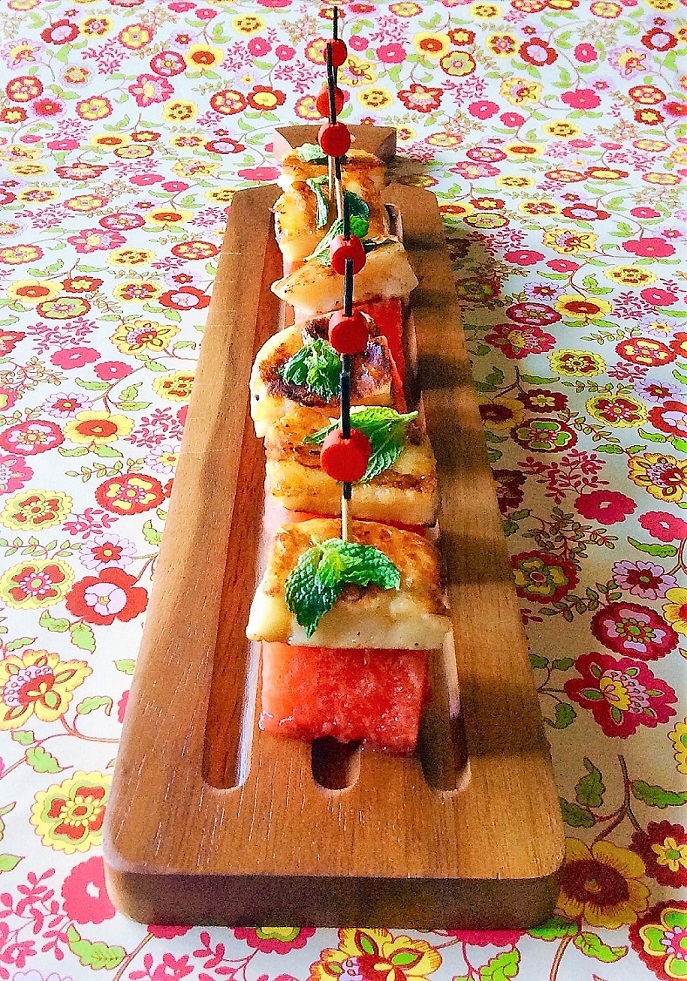 Σουβλάκια με πεπόνι, χαλούμι, λούντζα & mozarella
