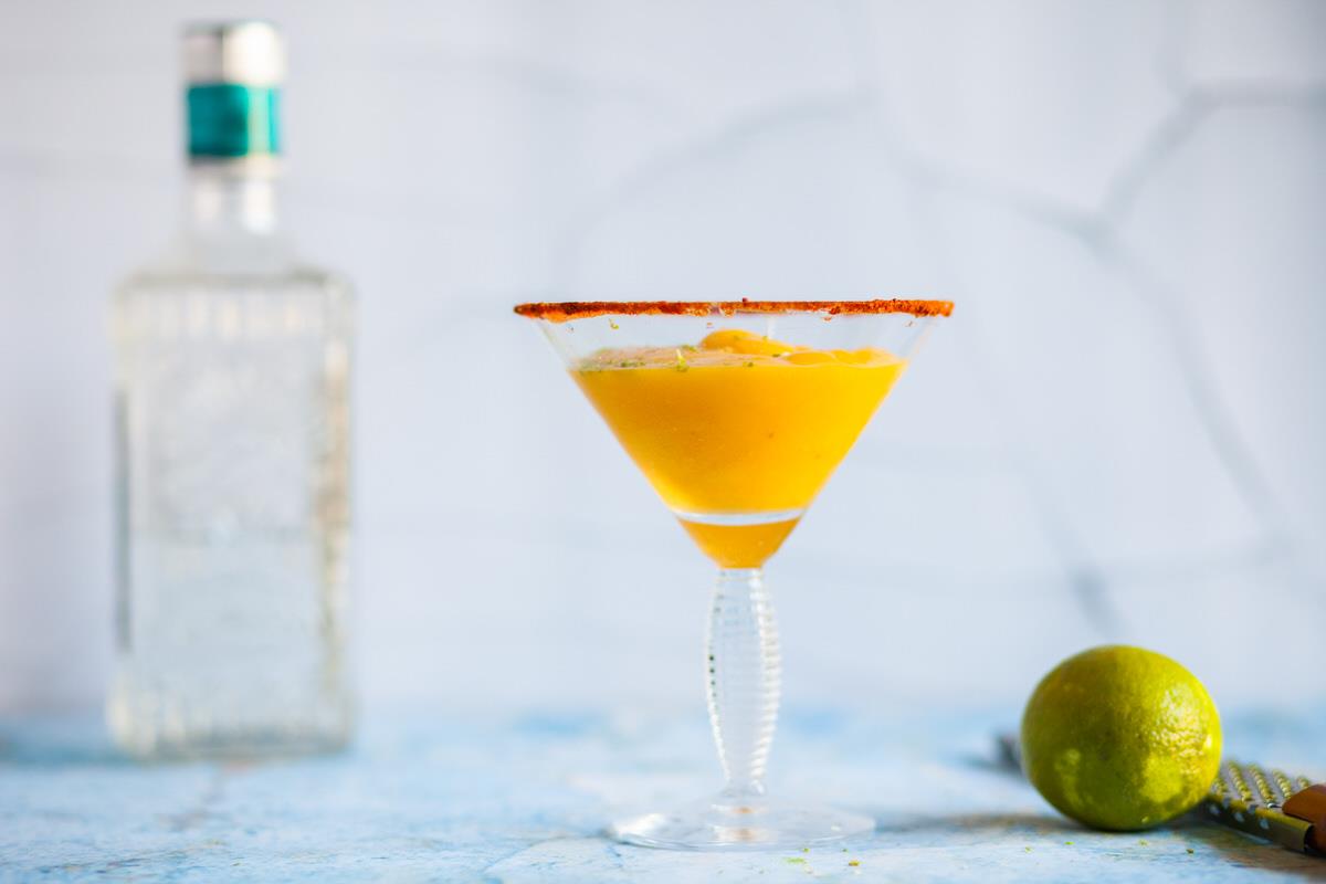 Βάλτε για λίγη ώρα τα ποτήρια στην κατάψυξη. Σε ένα ρηχό πιάτο ανακατέψτε λίγο (ή περισσότερο για τους πιο τολμηρούς) chili με άνθος αλατιού και σε ένα μπολ στύψτε lime. Βουτήξτε το χείλος των ποτηριών πρώτα στον χυμό lime και κατόπιν στο μίγμα chili/αλάτι. Στο multi βάλτε 1 μπάλα σορμπέ μάνγκο που θα έχετε αφήσει για λίγα λεπτά εκτός κατάψυξης για να μαλακώσει ελαφρώς, ένα μικρό σφηνάκι παγωμένη τεκίλα και τον χυμό από ½ lime (δόσεις για ένα άτομο). Δώστε λίγες στροφές μέχρι να ανακατευτούν τα υλικά και το μίγμα να μοιάζει με παχύρρευστη κρέμα, βάλτε το στο ποτήρι, πασπαλίστε με ξύσμα lime και απολαύστε το όσο είναι ακόμη παγωμένο.