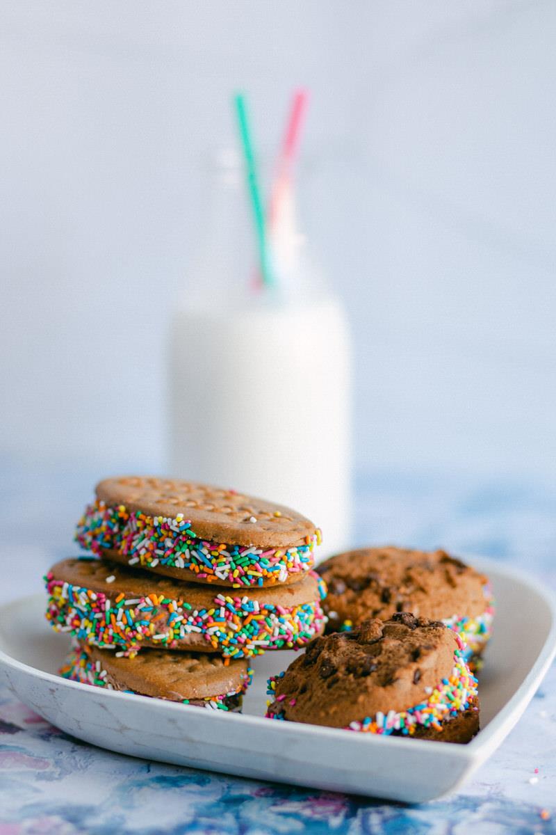 Διαλέξτε μία ή περισσότερες γεύσεις παγωτού, διαλέξτε μπισκότα (αν έχετε σπιτικά ακόμα καλύτερα), βάλτε σε ένα πιάτο πολύχρωμα σοκολατένια sprinkles ή κακάο ή flakes σοκολάτας και αρχίστε το παιχνίδι που δεν έχει κανόνες. Αν θέλετε να ανάψουν τα αίματα, προκηρύξτε διαγωνισμό ομορφιάς!
