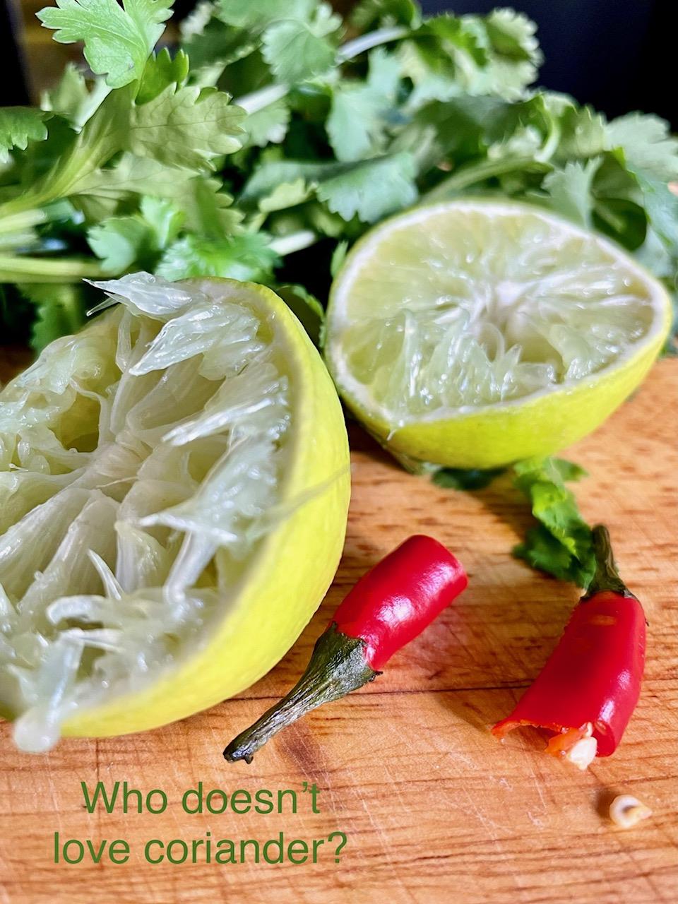 Η συνταγή που έφτιαξα σήμερα είναι ωδή στον κόλιανδρο και όσοι από εσάς την τιμήσουν θα έχουν αποδείξει την αγάπη τους γι’ αυτόν πέραν πάσης αμφιβολίας. Είναι ένα απλούστατο φαγητό που ετοιμάζεται εν ριπή οφθαλμού, είναι και εντελώς κατάλληλο για ελαφριά διατροφή. Όσοι πιστοί προσέλθετε. Οι υπόλοιποι, τι να πω, βάλτε μαϊντανό!