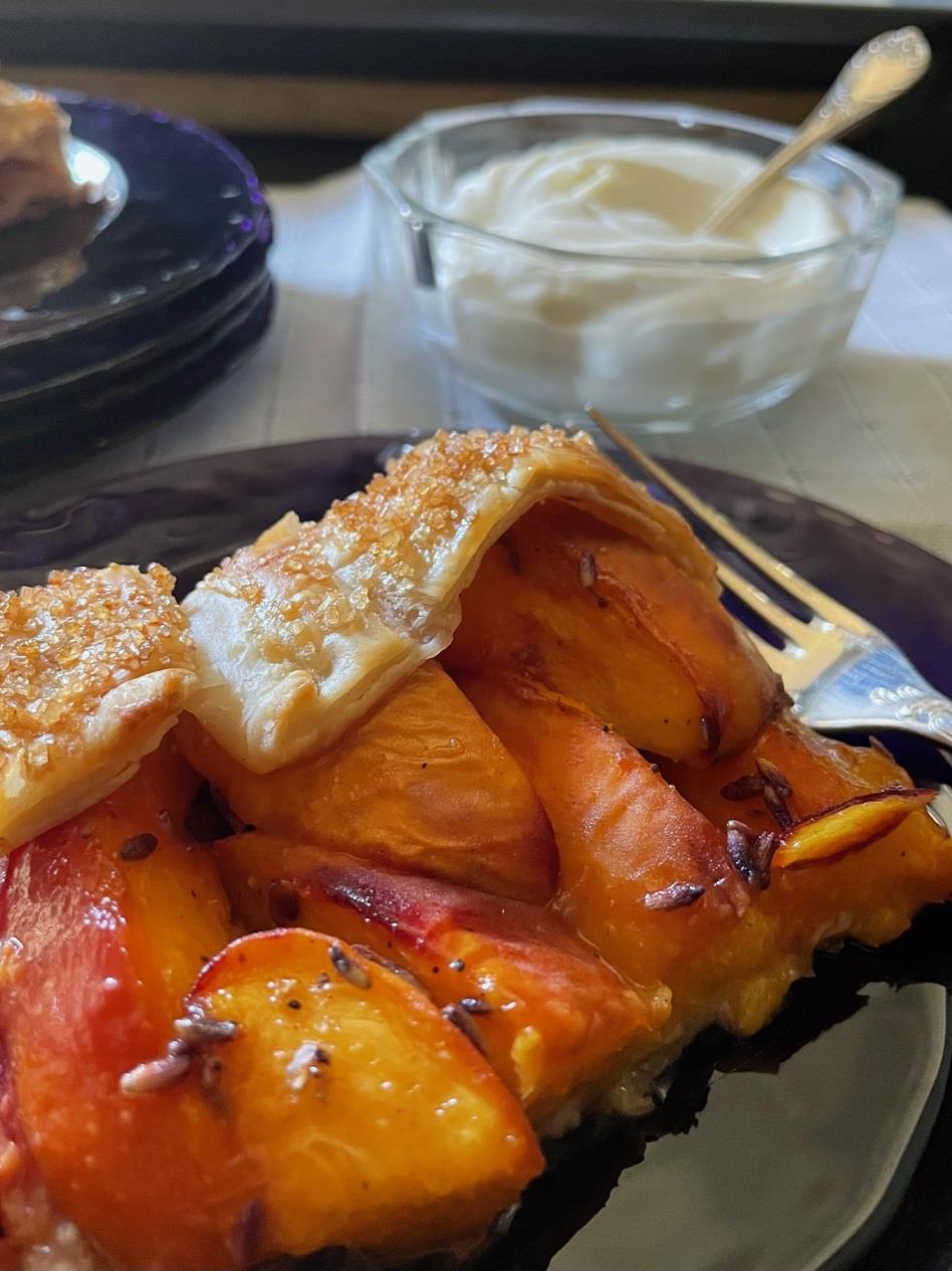 Αυτό ήταν όλο κι όλο το μάθημα. Κι επειδή εμείς τα ονομάζουμε όλα πίτες, κράτησα το γαλλικό όνομα. Κι όχι μόνον αυτό, αλλά έφτιαξα τη galette με έτοιμη σφολιάτα για να κάνω τη ζωή μου -και τη δική σας- ακόμα πιο εύκολη. Καθώς οδεύουμε ολοταχώς προς το δεύτερο μισό του Αυγούστου και τα ροδάκινα δεν θα είναι ακόμη για πολύν καιρό μαζί μας, άλλωστε ήδη κατέφθασαν τα σταφύλια και τα σύκα, τώρα είναι η στιγμή για να φτιάξετε αυτό το γλύκισμα.