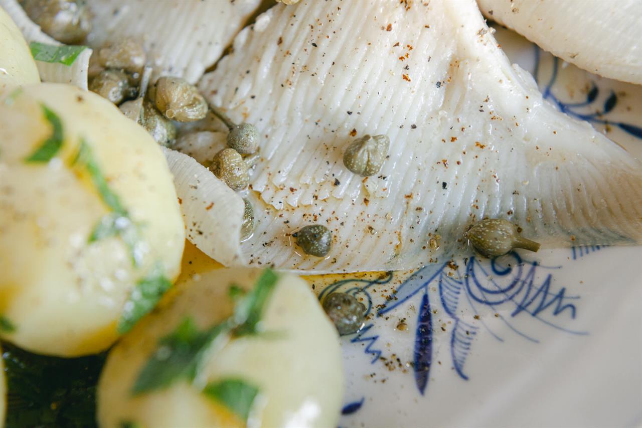 Αν και δεν τα πάω καλά με καμία θρησκεία, ως λάτρις των ψαριών και γενικά όλων των θαλασσινών, κάθε Παρασκευή διάλεγα το πιάτο ημέρας με ψάρι. Η μεγάλη μου χαρά ήταν όταν είχαν το σαλάχι με την κάππαρη, ένα φαγητό της λατρεμένης Βρετάνης με τα τεράστια σαλάχια που ψαρεύονται στη Μάγχη. Το φαγητό είναι πολύ παλιό και η συνταγή μία από τις πιο κλασικές της γαλλικής κουζίνας με σάλτσα που γίνεται, βεβαίως, με το καλύτερο γαλλικό βούτυρο από το γάλα των ξακουστών αγελάδων της γειτονικής Νορμανδίας. Το περίεργο και το πρωτότυπο της συνταγής είναι ότι αυτά τα δύο συνδυάζονται με την κάππαρη, κατ’ εξοχήν μεσογειακό φυτό. Όποιος σκέφτηκε αυτόν τον συνδυασμό, μπράβο του, πρέπει να ήταν σπουδαίος μάγειρας και γευσιγνώστης. Εδώ οφείλω πολλές ευχαριστίες στην φίλη μου Αθηνά, η οποία μου είχε φέρει το καλοκαίρι καταπληκτική κάππαρη από τη Σίκινο και με πήγε στον ψαρά της για ολόφρεσκα ψάρια, από όπου προμηθεύτηκα το σαλάχι κι άλλα θαλασσινά καλούδια.