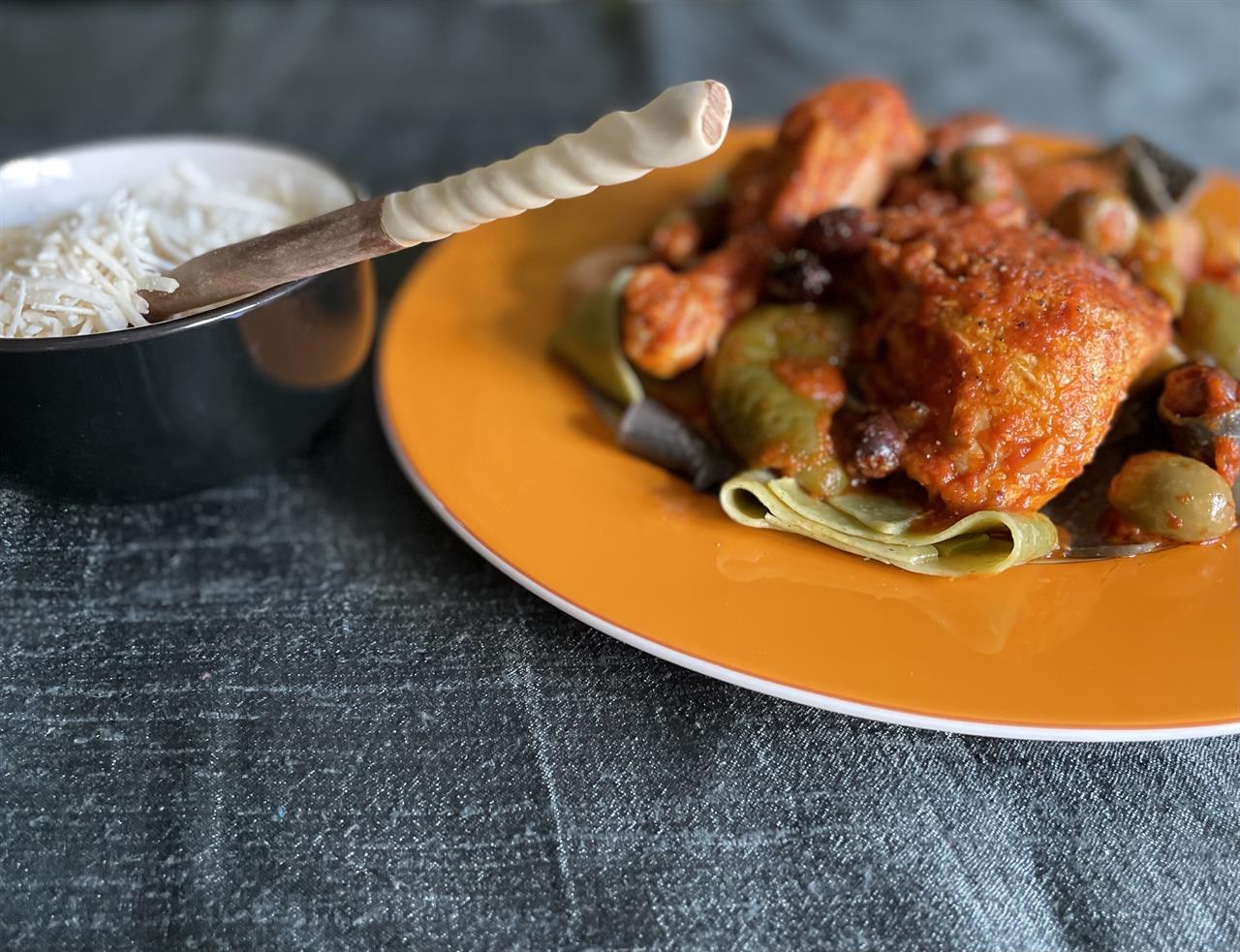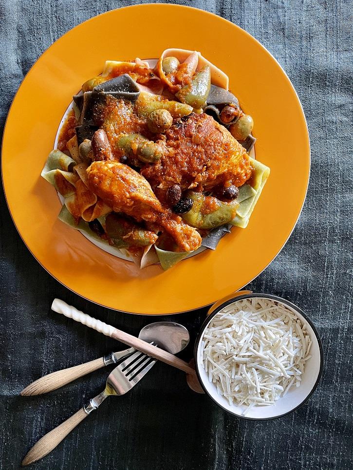 Κάπως έτσι όμως, περνάνε χρόνια ολόκληρα και κάποια αγαπημένα φαγητά κλειδώνονται στο βάθος του μυαλού, σαν ξεχασμένο αλεύρι στο ντουλάπι. Μέχρι που μια μέρα ξυπνάω και λέω, μα για δες, πόσα χρόνια πέρασαν από τότε που έκανες το περίφημο κοτόπουλο με τις πιπεριές και τις ελιές; Αχ αυτό το κοτόπουλο, είναι διαολεμένα νόστιμο! Κι όπως είπε η φίλη μου και γειτόνισσα που το δοκίμασε προχτές, αυτό είναι κοτόπουλο που λαλεί!