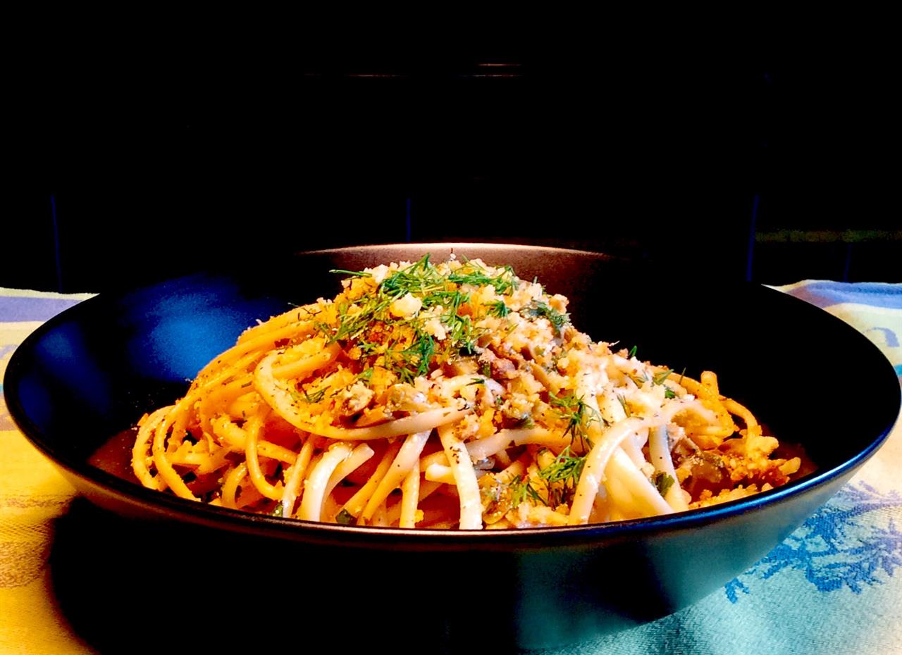 Linguine με πράσινες ελιές, ταραμά και κάπαρη Μεγάλη επιτυχία της Bon Agapi