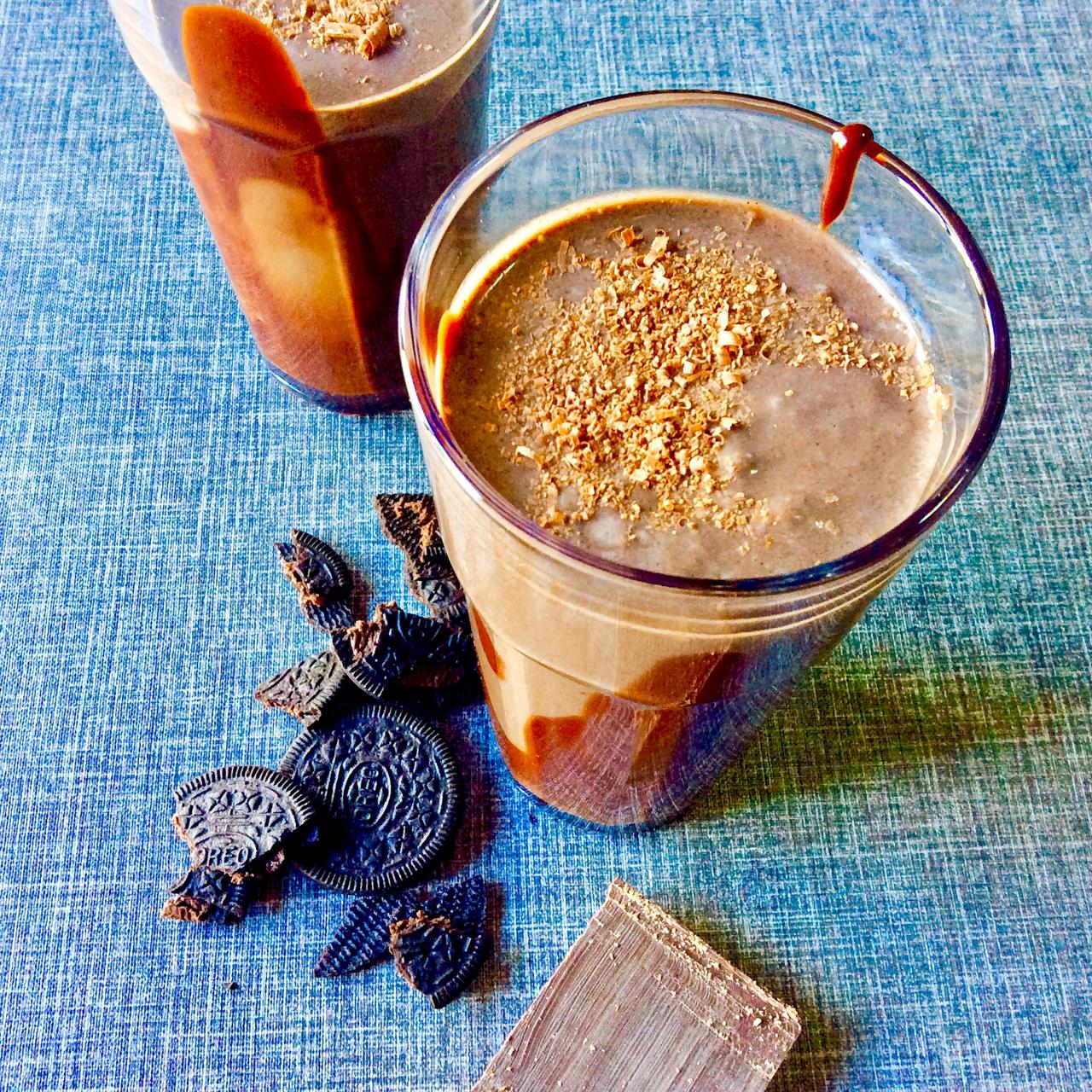 Για 4 νορμάλ μερίδες (όχι αμερικάνικες!). Πρώτη ετοιμάζουμε την σοκολατένια sauce (οι ποσότητες των υλικών γεμίζουν σχεδόν ένα βαζάκι χωρητικότητας 370 ml. Μπορείτε σίγουρα να φτιάξετε μικρότερη ποσότητα, σας συνιστώ όμως να μην το κάνετε γιατί η sauce συντηρείται στο ψυγείο για τουλάχιστον 2 εβδομάδες. Τη ζεσταίνετε είτε σε κατσαρολάκι είτε στον φούρνο μικροκυμάτων και γαρνίρετε τα παγωτά σας). Σε ένα κατσαρολάκι λιώνουμε σε μέτρια φωτιά 150 γρ. κουβερτούρα με ¼ φλ. τσ. σιρόπι αγαύης ή μέλι ή γλυκόζη. Ανακατεύουμε με σπάτουλα σιλικόνης έως ότου λιώσει εντελώς η σοκολάτα. Αποσύρουμε από τη φωτιά και προσθέτουμε ¾ φλ. τσ. κρέμα γάλακτος που έχουμε αφήσει για λίγο εκτός ψυγείου. Ανακατεύουμε καλά. Προχωράμε στο milkshake. Χτυπάμε στο blender 500 ml παγωτό βανίλια (το έχουμε αφήσει για λίγη ώρα εκτός κατάψυξης για να μαλακώσει) με ¾ φλ. τσ. γάλα και 20 μπισκότα Oreo (γεμιστά είτε με βανίλια είτε με σοκολάτα). Βάζουμε στον πάτο των ποτηριών 1 κ.σ. sauce και στριφογυρίζουμε τα ποτήρια για να πάει η sauce στα τοιχώματα. Προσθέτουμε το milkshake και γαρνίρουμε με ξύσμα σοκολάτας.