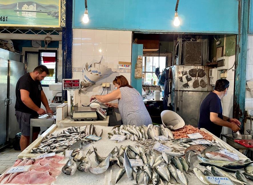 Η πόλη της Αίγινας σφύζει από ζωή. Από το πρωί μέχρι αργά τη νύχτα κόσμος πάει κι έρχεται στην αγορά, στα καφενεία και στα πολλά ταβερνάκια. Στην μικρή ψαραγορά τα ψάρια γίνονται ανάρπαστα. Η κατσούλα, το πανέμορφο και απίστευτα νόστιμο ντόπιο μικρό ψαράκι που σπάνια κανείς θα βρει στην Αθήνα, είναι η πρώτη που τελειώνει, καθώς την μαγειρεύουν παντού, στις ταβέρνες και στα σπίτια. Εγώ την απόλαυσα στην παλιά ψαροταβέρνα του Γελαδάκη, όπως είναι πιο γνωστή στους ντόπιους (το επίσημο όνομά της είναι Η Αγορά), ακριβώς πίσω από την ψαραγορά. Εκεί έφαγα και τον πιο νόστιμο και ζουμερό φρέσκο τόνο που έχω φάει ποτέ εν Ελλάδι, ψημένο στην εντέλεια στα κάρβουνα μαζί με καψαλισμένες πιπεριές και κρεμμύδια.