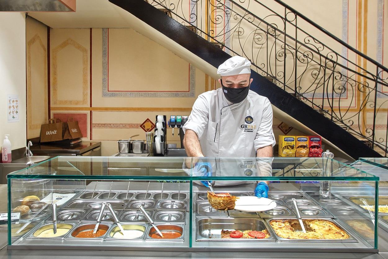 με την ανάγκη για γρήγορη και, συγχρόνως, άριστη εξυπηρέτηση. Το VENETI GREAT λειτουργεί ως ένας πολυχώρος γεύσεων Shop in Shop που στεγάζει δέκα διαφορετικά concept εστίασης για όλα τα γούστα, όλες τις ώρες της ημέρας, μεταξύ των οποίων πίτσα, σουβλάκι, μαγειρευτά πιάτα ημέρας, γαλακτοπωλείο, καφέ, κ.α. και, βεβαίως, φούρνος. Το VENETI GREAT λειτουργεί καθημερινά από τις 6.00 έως τις 21.00, ενώ πραγματοποιεί διανομή μέσω των εταιρειών e-food και wolt.
