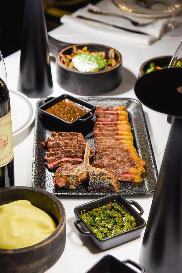 Αν αποφασίσουμε να παρακάμψουμε πολλά από τα παραπάνω και να παίξουμε στο κλασικό μοτίβο του ενός ορεκτικού και ενός κυρίως πιάτου, τότε έχουμε και πάλι δύο επιλογές για το κυρίως : Η πρώτη αφορά αποκλειστικά το μοσχάρι από διαφορετικές ράτσες, ελληνικές και ξένες, σε διαφορετικές σκάλες ωρίμανσης και διαφορετικές κοπές, για ένα ή για πολλά άτομα (από €28 έως € 140, όπου το μικρότερο βάρος του κομματιού ζυγίζει 250 γρ. και το μεγαλύτερο 1.200 γρ.). Η δεύτερη επιλογή έχει κοτόπουλο, χοιρινό Iberica, αρμένικα κεμπάπ και πάπια, όπου και πάλι, κάθε πιάτο χορταίνει τουλάχιστον 2 άτομα. Τα συνοδευτικά ξεκινούν από πράσινη σαλάτα και σοτέ λαχανικά, περνούν στις -αλίμονο αν έλειπαν- πατάτες (τηγανιτές και πουρέ) και τελειώνουν με καταπληκτικές σάλτσες : βελούδινη Béarnaise, σάλτσα γλυκού κόκκινου κρασιού, πλούσια σάλτσα με πράσινο πιπέρι και κονιάκ και ζωηρή chimichurri.