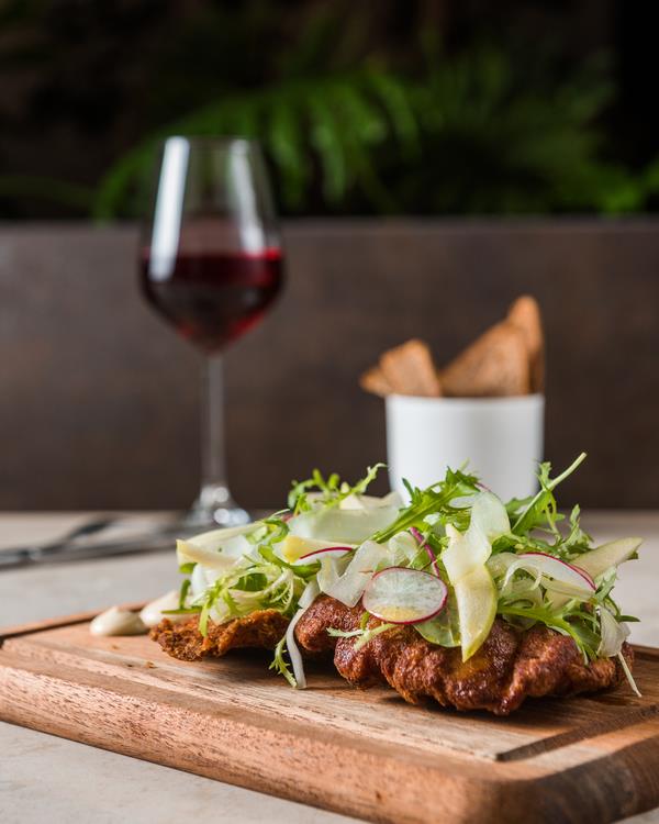 Το βοδινό ταρτάρ μου άρεσε για τις εντάσεις που του δίνουν η κάππαρη και το πικάντικο πεκορίνο, κι αν κάτι θα είχα να πω, αυτό αφορά το λάδι τρούφας που προσωπικά δεν συμπαθώ γιατί βρίσκω ότι κλέβει άγαρμπα τα αρώματα των υπολοίπων υλικών. Πολύ νόστιμο, ζουμερό και άψογα τηγανισμένο ήρθε το κοτόπουλο milanese που συνοδεύεται από φρέσκα σαλατικά. Ειρήσθω εν παρόδω, το αυθεντικό μιλανέζικο φαγητό είναι κοτολέτα από νεαρό μοσχάρι, παναρισμένο και τηγανισμένο και ονομάζεται cotoletta alla milanese. Απομακρυνόμενο από το Μιλάνο το μοσχαράκι αντικαθίσταται συχνά από κοτόπουλο, ενώ περνώντας τα Ελληνικά σύνορα αλλάζει εντελώς και γίνεται το γνωστό μας κοτόπουλο μιλανέζα με πιλάφι και λευκή σάλτσα. Στο εστιατόριο του μουσείου το κοτόπουλο παραμένει ως εναλλακτικό του μοσχαριού, πλην όμως πανάρεται και τηγανίζεται alla milanese.