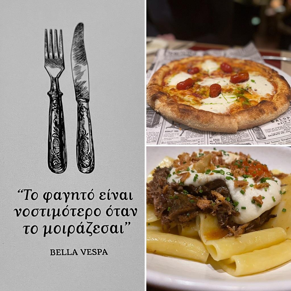 Ένα από τα βράδια των γιορτών θα βρεθώ με φίλους που μένουν στην Γλυφάδα και θα πάμε στο πολύβουο Bella Vespa της οδού Κύπρου, όπου ο chef Παύλος Κυριάκης έχει ανανεώσει το μενού ακολουθώντας τα μονοπάτια της ιταλικής κουζίνας για την οικειότητα που προσφέρει, αυτό δηλαδή που ονομάζουμε comfort. Θα εντρυφήσουμε στις πίτσες με το εξαιρετικό ζυμάρι, στα χειροποίητα ραβιόλι με τα άγρια μανιτάρια και την κρέμα παρμεζάνας, στα πακέρι με το μοσχάρι ραγού και τη νοστιμιά από την κρέμα Μετσοβόνε και θα αμαρτήσουμε ολοκληρωτικά και χωρίς τύψεις με το calzone γεμισμένο με πραλίνα και κόκκινα φρούτα του δάσους.
