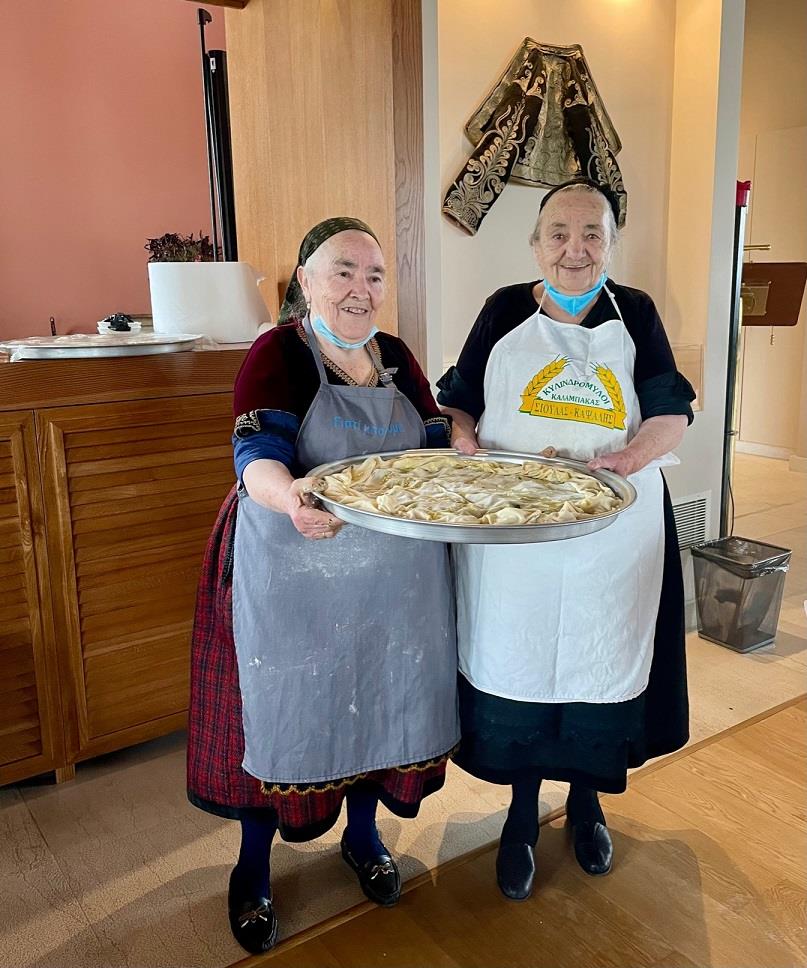 Τα της γαστρονομίας δεν εξαντλούνται μόνον στα γεύματα του ξενοδοχείου γιατί ανάμεσα στις πολλές διαφορετικές εξορμήσεις που έχουν σχεδιαστεί (από πεζοπορίες στο χιόνι, snowmobiling, εκδρομές, κ.λπ.), υπάρχει το κυνήγι της άγριας τρούφας με τα «λάφυρα» να μαγειρεύονται σε ξύλινη καμπίνα μέσα στο δάσος και μάθημα ανοίγματος φύλλου  για πέτουρα (τα ντόπια ζυμαρικά) και πίτα από δύο καταπληκτικές Μετσοβίτισσες. Το δίωρο μαζί τους ξεπερνάει κατά πολύ το μάθημα μαγειρικής, αφού οι δύο αδελφές είναι απολαυστικά γλαφυρές και γεμάτες από την σοφία της ζωής στην Πίνδο. Για την πίτα που ετοίμασαν, δεν το συζητώ καν. Όσο για εμάς τους επίδοξους μαθητές, δεν νομίζω πως θα καταφέρουμε ποτέ να ανοίξουμε τόσο λεπτό φύλλο, κι ας περνιόμαστε για καλοί μάγειρες και μαγείρισσες, κι ας μην χάσαμε ούτε μια λέξη από τα κόλπα που μας δίδαξαν.