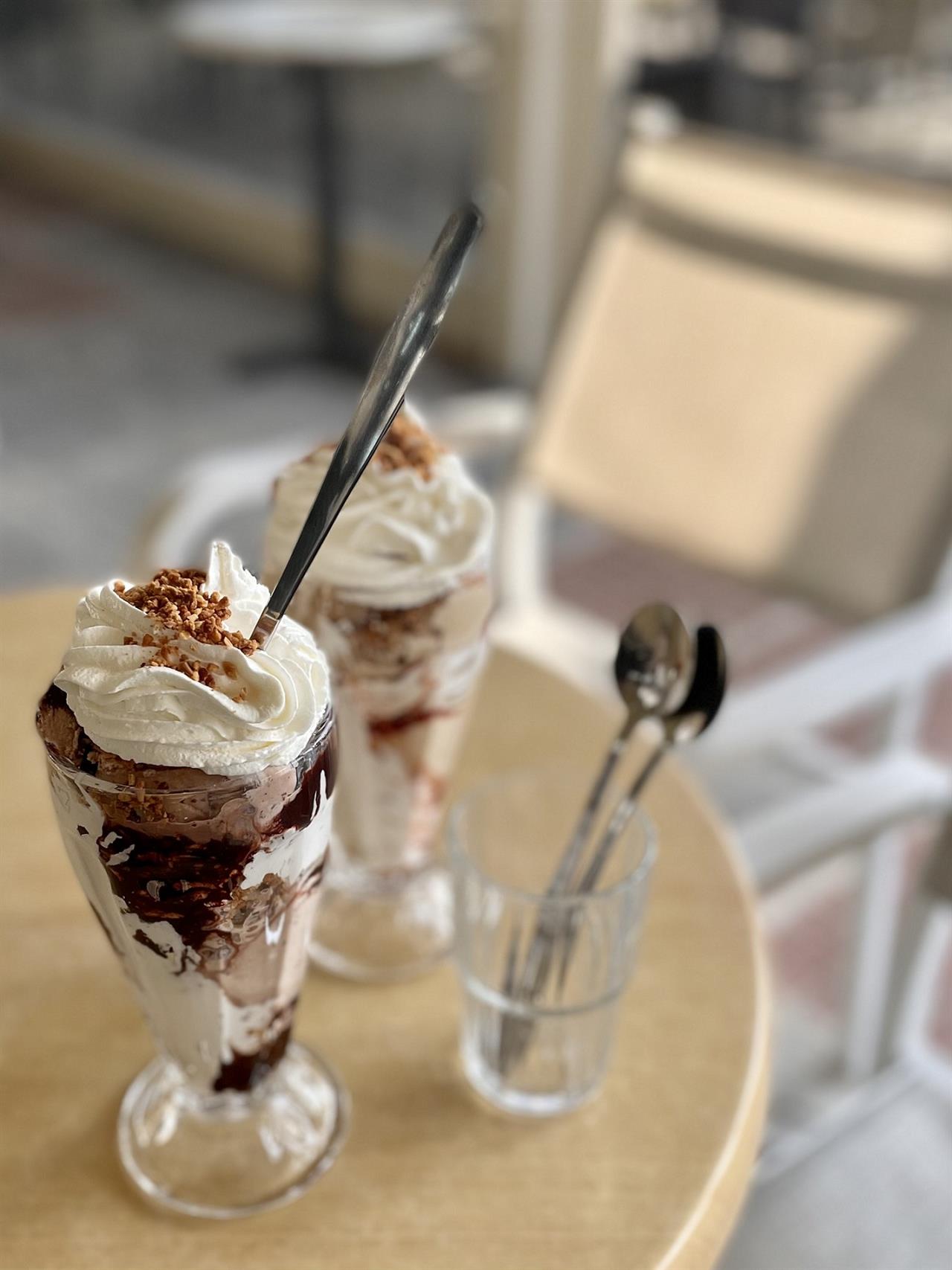 Όπως πολύ σωστά γράφει ο Αλέξανδρος Ψυχούλης στο βιβλίο του, το «ΜΕΤΑ τα τσίπουρα» αποτελεί πεδίο που βρίσκεται υπό εξερεύνηση. Δεν υπάρχει ακόμα ένας ασφαλής μπούσουλας και όλα εξαρτώνται από το τι πρόκειται να ακολουθήσει. Μόνη βεβαιότητα είναι ότι ο δρόμος σου ΔΕΝ πρέπει να σε οδηγήσει στο κρεβάτι. Έτσι, περπατήσαμε μέχρι την παραλία και βρεθήκαμε στο πιο καλτ ζαχαροπλαστείο του Βόλου, το Μινέρβα, για να γλυκαθούμε με τα επίσης καλτ παγωτά Σούπερ Μόκα και Σικάγο. Σε ψηλό ποτήρι με το ψηλόλιγνο κουτάλι βάλαμε στο στόμα τη γεύση των παιδικών μας χρόνων, όταν το τίγκα σε θερμίδες παγωτό και το υπέρ-πλούσιο γλυκό ήταν τα μόνα που γνωρίζαμε, όταν οι καφετέριες και τα ζαχαροπλαστεία ήταν σχεδόν η μόνη μας κοσμική έξοδος.