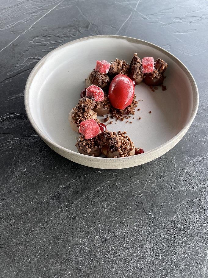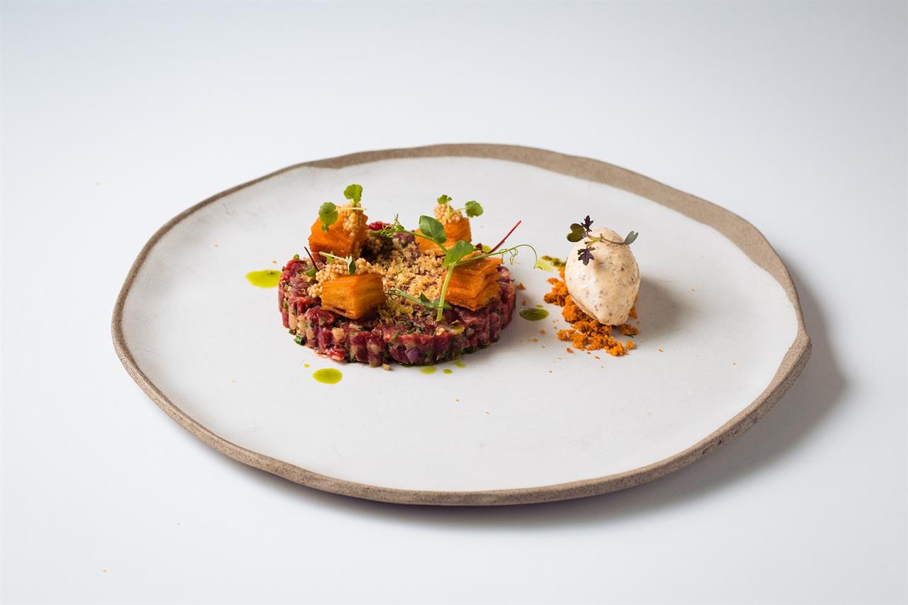 Ξεκινώντας από τα χειροποίητα ψωμιά και την μους ταραμά, προχωρώντας στην πολύ ιδιαίτερη σαλάτα με τα παντζάρια που παίζουν με τις υφές και τις οξύτητες, τα στρείδια με την ελληνική ponzu (η ponzu είναι ιαπωνική sauce κι εδώ αντί για yuzu χρησιμοποιούν πορτοκάλια από την Πελοπόννησο κι αντί για katsuobushi, δηλ. νιφάδες καπνισμένου, αποξηραμένου τόνου σε ζύμωση, χρησιμοποιούν τσίρο με μια αντίστοιχη τεχνική), το πανέξυπνο και νοστιμότατο μοσχαρίσιο ταρτάρ με σινάπι, παγωτό μουστάρδας και κρόκο αυγού κονφί, έχεις ήδη καταλάβει την φιλοσοφία της κουζίνας : εξαιρετική πρώτη ύλη, φαντασία και αρμονία στους συνδυασμούς, φίνες και συγχρόνως comfort γεύσεις και ιδιαίτερες τεχνικές οι οποίες, όμως, δεν φωνασκούν στο πιάτο. Έτσι, η ρεβιθάδα με την πεσκανδρίτσα και τα μάγουλα από σαλάχι δένει με την κρέμα από φινόκιο και ο αέρας λεμονιού δεν έχει μπει για το θεαθήναι, αλλά δίνει την απαραίτητη ελαφράδα στο πληθωρικό αυτό φαγητό. Το ίδιο συμβαίνει και με τον κρασάτο κόκορα με τον τραχανά, όπου το ελαφρώς καπνισμένο γιαούρτι τον δροσίζει σημαντικά, παρομοίως και με το χοιρινό Iberico, όπου τη γλύκα των καρότων φέρνει σε ισορροπία η σάλτσα εσπεριδοειδών.