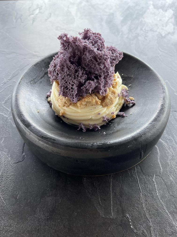 Η κουζίνα του Mira Me απέκτησε φέτος κι έναν πανάξιο chef pâtissier, τον γνωστό και αγαπητό Μπάμπη Ζιντίλη, του οποίου οι γλυκές δημιουργίες είναι η αναμφισβήτητη προστιθέμενη αξία στο μενού. Τα επιδόρπιά του είναι όχι μόνον νόστιμα και όμορφα, αλλά και απόλυτα εστιατορικά, με την έννοια ότι άλλο το γλυκό του ζαχαροπλαστείου, άλλο του καφέ και άλλο του εστιατορίου‧ ακόμα κάτι που δεν είναι προφανές ούτε αυτονόητο, σε πολύ μεγάλο αριθμό εστιατορίων (όχι άλλο cheesecake μετά το φαγητό!). Ο Μπάμπης Ζιντίλης παντρεύει την πλούσια σοκολάτα με ζαχαρωτά marshmallows και το αρωματικότατο, ξινούτσικο παγωτό βατόμουρο προσφέρει τη δροσιά του, τσιμπώντας πολύ ευχάριστα τον ουρανίσκο μας, για τον οποίο υπάρχει κι άλλη έκπληξη από τα μικρούτσικα καραμελάκια των παιδικών μας χρόνων που εκρήγνυνται με το που τα βάζεις στο στόμα σου (pop rocks ή popping candy ονομάζονται). Η κρέμα λεμονιού είναι αέρινη και δροσερή και συνοδεύεται από ελβετική μαρέγκα και ζελέ μυρωδάτου βασιλικού. Το γιαούρτι γίνεται βελούδινη μους και κρέμα, η σάλτσα από κόκκινα φρούτα ταιριάζει γάντι και το εντυπωσιακό λιλά sponge cake είναι τόσο ελαφρύ όσο και το όνομά του.