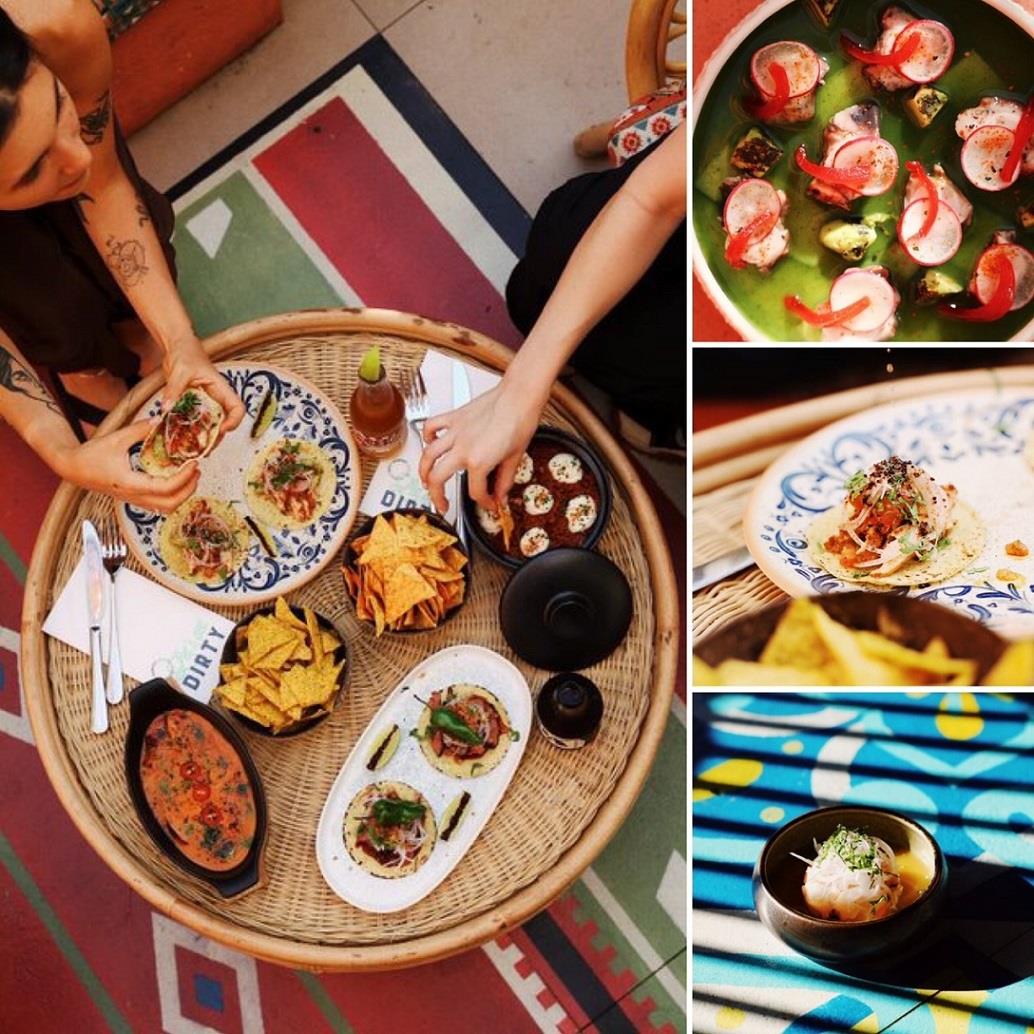 Το φαγητό στο Dirty Sanchez είναι υπόθεση μοιράσματος. Ο γνωστός μας πολυμήχανος σεφ Σπύρος Μαυροειδής (Nikkei Peruvian Resto-Bar, Coyoacan) εδώ παίζει χαλαρά κι ανεπιτήδευτα. Μεταξύ των άλλων, φτιάχνει ένα καταπληκτικό guacamole που με τα συνοδευτικά τραγανά nachos τελειώνει σε χρόνο dt και σίγουρα παραγγέλνεις κι άλλο. Η δική του εκδοχή για το παραδοσιακό aquachile έχει χταπόδι αντί για γαρίδες και είναι εθιστικά νόστιμο (από το aqua = νερό και το chile = τσίλι, αυτό το φαγητό-σαλάτα φτιάχνεται συνήθως με γαρίδες που μαρινάρονται σε ένα νόστιμο, καυτερό, δροσερό και ξινό υγρό με τσίλι, lime, αλάτι και κόλιανδρο). Στη συνέχεια, το καρπούζι, τα ντοματίνια, η γλιστρίδα, το καλαμπόκι, το ανθότυρο, το lime και ο φρέσκος κόλιανδρος συνδυάζονται σε μια σαλάτα που γράφει «δροσιά» (υποθέτω ότι σε λίγο, που η ψύχρα θα αυξάνεται, κάποια άλλη σαλάτα θα πάρει τη θέση της και ανυπομονώ να τη δοκιμάσω). Σειρά έχουν τα tacos, οι tostadas και τα fajitas που παρατάσσονται με διάφορα υλικά και ταιριάσματα -κοτόπουλο, ψάρι, γαρίδες, χοιρινό-, ενώ όλα έχουν κοινό παρονομαστή τη φρεσκάδα και το ευχάριστο τσίμπημα στη γλώσσα.