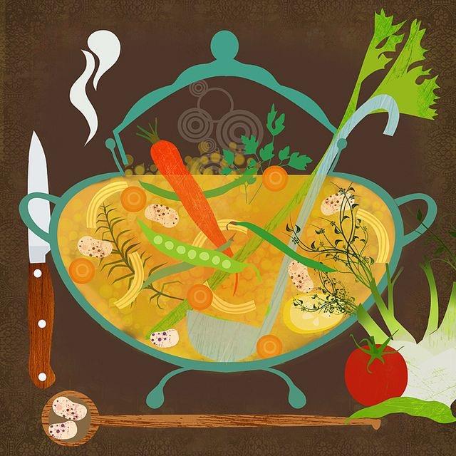 Ένα από τα πρώτα παιδικά μου διαβάσματα ήταν Ο Τρελαντώνης της Πηνελόπης Δέλτα, από όπου φέρνω στα μάτια μου ολοζώντανη την εικόνα των παιδιών που έχουν αραδιαστεί στο τραπέζι της κουζίνας και ξεκουκουτσιάζουν με μια φουρκέτα τα βύσσινα για το γλυκό του κουταλιού. Δεν έχω πολλές τέτοιες εικόνες να θυμηθώ από τα μαγειρέματα στο σπίτι μας, παρά μόνον ίσως τη γιαγιά μου που με έβαζε να της ρίχνω το λάδι λίγο λίγο στην αξεπέραστα νόστιμη μαγιονέζα της. Κάθε λίγο και λιγάκι μου έδινε να δοκιμάσω για να της πω αν θέλει λίγο ακόμη, κι εγώ, άλλο που δεν ήθελα. Α, και το βάψιμο των κόκκινων αυγών που κάθε χρόνο αναλάμβανε εκείνη τελετουργικά. Όταν τέλειωνε, η μαμά τής έλεγε «και του χρόνου μάνα», κάθε φορά η γιαγιά απαντούσε, «αν ζω παιδάκι μου» και τότε η μαμά ανταπαντούσε, «κάθε χρόνο το ίδιο λες μάνα, γι’ αυτό σου πάει γούρι»! Αυτές είναι περίπου όλες κι όλες οι παιδικές μου αναμνήσεις από την οικογενειακή κουζίνα. Ούτε ξεκουκουτσιάσματα, ούτε γλυκά του κουταλιού, ούτε μαζεμένες χρυσοχέρες να ανοίγουν φύλλο και να τσακώνονται για το αν το κοκκινιστό θέλει κανέλα ή μπαχάρι.