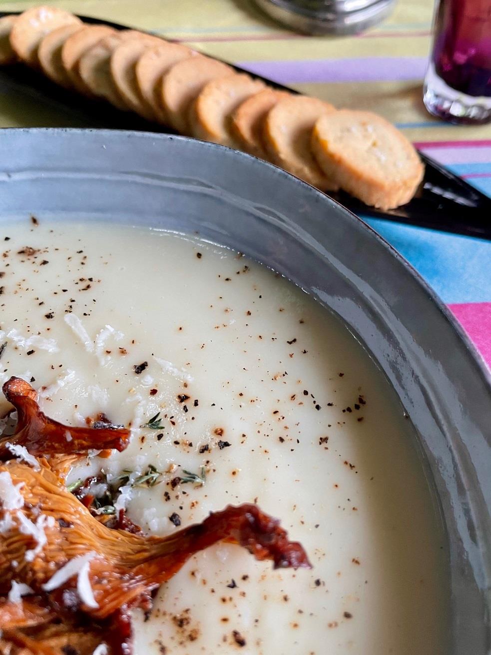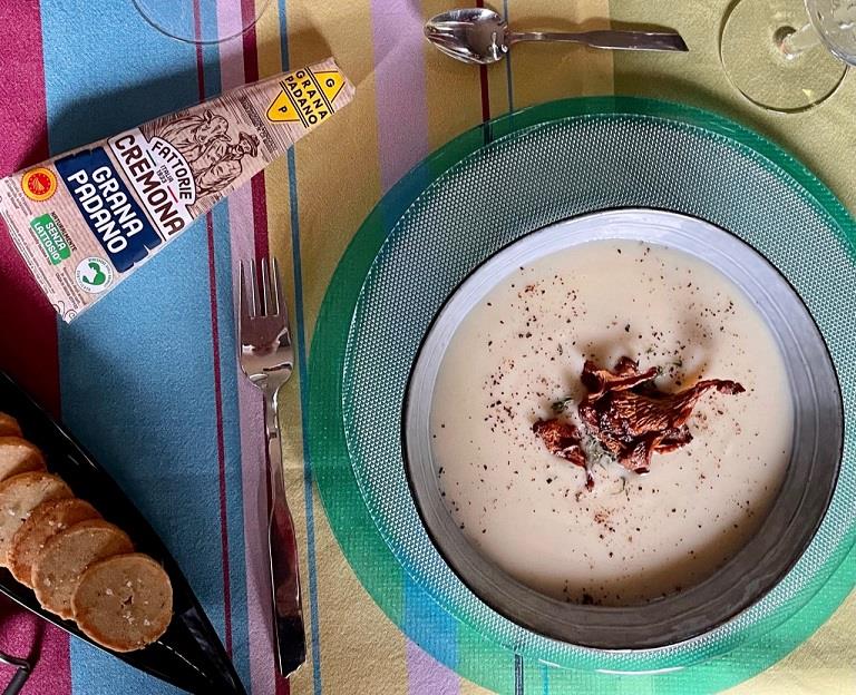 ΒΕΛΟΥΤΕ ΣΟΥΠΑ ΛΕΥΚΩΝ ΛΑΧΑΝΙΚΩΝ ΜΕ GRANA PADANO ΚΑΙ ΤΑ ΣΥΝΟΔΕΥΤΙΚΑ ΤΗΣ ΜΠΙΣΚΟΤΑ