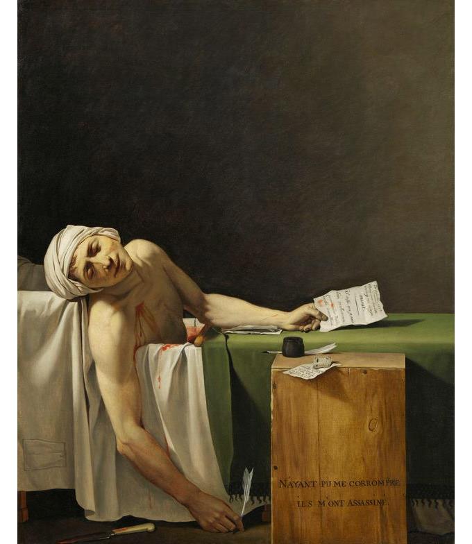 Η αναφορά της έκθεσης στην Γαλλική Επανάσταση γίνεται με τον εμβληματικό πίνακα του Ζακ Λουί Νταβίντ «Ο θάνατος του Μαρά», ως μάρτυρα της ελευθερίας της καινούργιας εποχής.