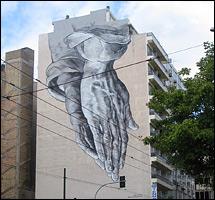 Στο 20 της οδού Πειραιώς, κοντά στην Ομόνοια, στην τυφλή όψη του οικοδομήματος που στεγάζει το ξενοδοχείο Vienna βρίσκεται το πρώτο έργο που υλοποιήθηκε στην Αθήνα. Πρόκειται για μια ανεστραμμένη εκδοχή του γνωστού σχεδίου του Albrecht Durer, «Hands» και αποτελεί πρόταση του Παύλου Τσάκωνα, υλοποιημένη από την ομάδα Αναστασάκου-Κρέτση. Το «Praying for us» φρόντισε να διαθέτει χρωματικές διαβαθμίσεις που ταιριάζουν με τον ουρανό, ώστε να φαίνεται πως τα χέρια βγαίνουν από αυτόν και ουσιαστικά αποτελεί σχόλιο στην σύγχρονη πραγματικότητα, κατά την οποία ο Θεός… προσεύχεται για εμάς.
