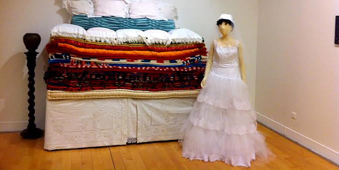 Συνολικά παρουσιάζονται ογδόντα νυφικά, δίνοντας στον θεατή την ευκαιρία να παρακολουθήσει τη μόδα, τα σχέδια, αλλά και τα υλικά στο πέρασμα των δεκαετιών. Ένα νυφικό του 1840 που φορέθηκε στη Προύσα είναι ένα από τα παλαιότερα. Τα χρώματα του, της παλέτας του κόκκινου, είναι εντελώς διαφορετικά από ό,τι έχουμε συνηθίσει στα νυφικά στις μέρες μας.
