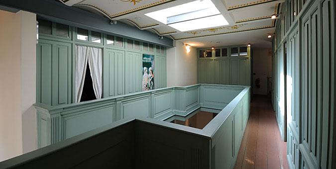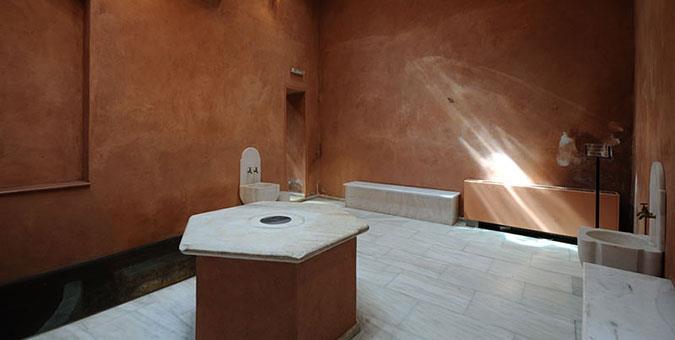 Η έκθεση φιλοξενείται στα αποδυτήρια και στους θολωτούς χώρους του μνημείου. Ειδικές προβολές παρουσιάζουν την άφιξη, την προετοιμασία, τη διαδοχική παραμονή στους κυρίως χώρους του χαμάμ και αποκαλύπτουν με ευφάνταστο τρόπο την «ιεροτελεστία» του λουτρού. Δύο από τους χώρους των αποδυτηρίων, διαμορφωμένοι κατάλληλα με σκηνικά και αντίγραφα αντικειμένων, λειτουργούν συμπληρωματικά με τις προβολές και φωτίζουν τη χρήση και τη ζωή των αποδυτηρίων.