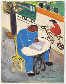 Δύο έργα που φιλοτέχνησε στη Γαλλία και αφορούν κτήρια παρουσιάζονται στην έκθεση. Πρόκειται για το κτήριο της Γαλλοβρετανικής Εστίας όπου διέμενε με τα χαρακτηριστικά του κόκκινα τούβλα. Στο δεύτερο αποτυπώνει τα παλιά σπίτια της Αμιένης. Σημαντικός σταθμός στην καριέρα της είναι η ένταξη της στην πρωτοποριακή για την εποχή καλλιτεχνική ομάδα “Αρμός” το 1949. Εκεί για μία ακόμα φορά βρέθηκε με τη μαγιά των καλλιτεχνών που καθόρισαν τα χαρακτηριστικά τις ελληνικής εικαστικής τέχνης. Aυτή είναι και η πιο παραγωγική της περίοδος. Το portfolio εκείνης της εποχής περιέχει αρκετά έργα όπου αποτυπώνει φίλους της όπως το σχέδιο με τη Ζωή Καλιγγά να αφήνεται στη μουσική δίπλα σε ένα γραμμόφωνο, ή εκείνο με την επιστήθια φίλη της Ναταλία (Νάτα) Μελά.