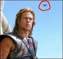 Ήταν τελικά τόσο ανεπτυγμένος ο πολιτισμός της Μεσογείου στα ομηρικά χρόνια που οι στρατιές των Αχαιών κατέφθαναν στην Τροία με πτήσεις τσάρτερ; Από την πρώτη στιγμή της προβολής της ταινίας «Τροία», το διαδίκτυο πλημμύρισε με το στιγμιότυπο του Brad Pitt ως Αχιλλέα, πάντα ετοιμοπόλεμου στο πεδίο της μάχης, ενώ από πάνω του περνά ένα Boeing 747. Και έκτοτε, οι σινεφίλ ερίζουν για την υπόθεση «Δούρειο Αεροπλάνο». Πρόκειται για τραγικό λάθος που δεν κόπηκε στο μοντάζ ή για ένα τρικ του Photoshop για να «κοροϊδέψει» η ηλεκτρονική κοινότητα την ταινία;