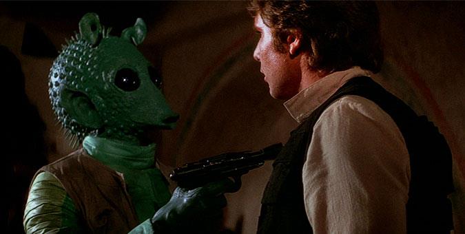 Greedo Ποιος είναι: Κυνηγός κεφάλων, ο οποίος εντοπίζει τον Χαν Σόλο στην καντίνα του Mos Eisley στην ταινία Μια Νέα Ελπίδα. Γιατί τον θυμόμαστε: Για το θάρρος του να πυροβολήσει πρώτος. Ή μήπως όχι;