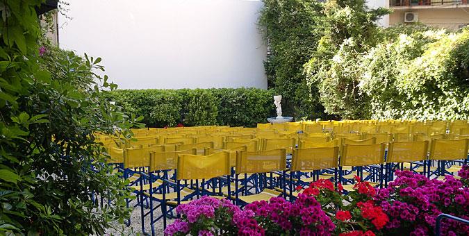 Παναθήναια Λ. Αλεξάνδρας & Μαυρομιχάλη, τηλ.: 210 6425714 Εκεί που δεν το περιμένει κανείς, κρύβονται οι ομορφότεροι κήποι: Όπως αυτός του σινέ Παναθήναια, σε μια γκρίζα περιοχή της Νεάπολης. Κοντά στη βουή της λεωφόρου Αλεξάνδρας, οι κίτρινες καρεκλίτσες σκηνοθέτη, το χαλίκι, οι φυλλωσιές και τα πολύχρωμα παρτέρια της αυλής δημιουργούν το ιδανικό σκηνικό για να ξεφύγουμε από την πόλη. Αυτή την εβδομάδα… ξεφεύγουμε ως την Ιταλία, με τη νέα ταινία του Τζουζέπε Τορνατόρε «Θα σε περιμένω, πάντα», για τον έρωτα μεταξύ μιας κασκαντέρ και ενός καθηγητή αστροφυσικής (εισιτήριο 7€).