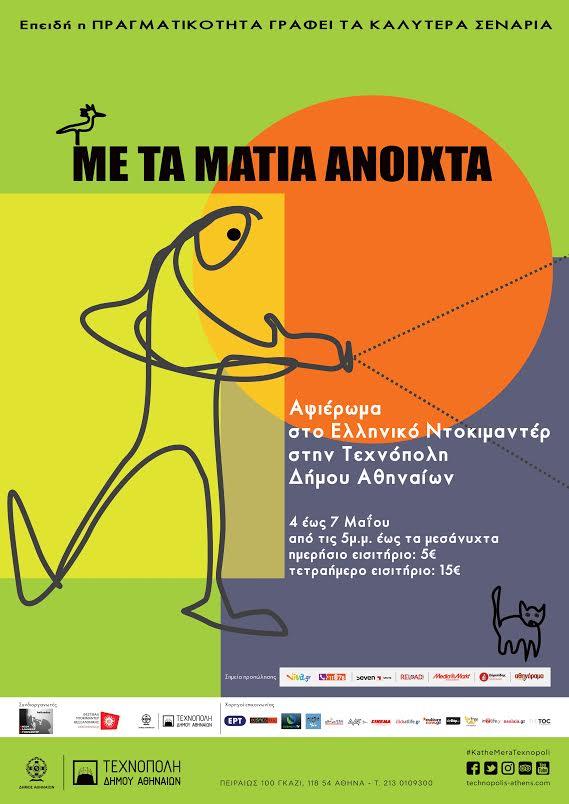 «Με τα μάτια ανοιχτά» λέγεται η μεγάλη γιορτή για το ντοκιμαντέρ που φιλοξενείται στην Τεχνόπολη, με 25 προβολές, 16 ελληνικά ντοκιμαντέρ και πολλές εκπλήξεις.