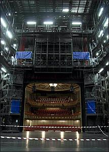 Ίσως περισσότερο απ’ ότι σε οποιοδήποτε άλλο σημείο του θεάτρου, η ατμόσφαιρα εποχής αντανακλάται στην πλήρως αποκατεστημένη κεντρική σκηνή. Ντυμένα με κόκκινο βελούδο, τα 626 καινούρια καθίσματα που γεμίζουν την πλατεία και τους δύο εξώστες κάνουν υπέροχη αντίθεση με τους γκρι σιέλ τοίχους με τις χρυσαφένιες λεπτομέρειες. Ο διάδρομος που ίσως να θυμάστε στην πλατεία από τις τελευταίες παραστάσεις του 2001 έχει εξαφανιστεί, ενώ οι οροφογραφίες γύρω από τον εντυπωσιακό πολυέλαιο έχουν αποκατασταθεί πλήρως.