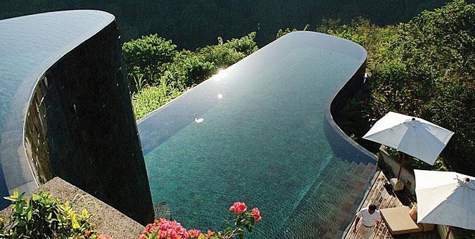 Alila Villas, Μπαλί Η πιο ζεν πισίνα με ξαπλώστρες-κρεβάτια για διαλογισμό κάτω από τα δέντρα San Alfonso del Mar, Χιλή Αν η προηγούμενη πισίνα, εκείνη της Τουρκίας, έμοιαζε με νησί, αυτή εδώ σίγουρα διεκδικεί τον τίτλο κανονικότατης παραλίας Amirandes Grecotel Exclusive Resort, Γούβες Ηρακλείου, Κρήτη Άνετοι καναπέδες, sunbeds σε ειδικά διαμορφωμένα stands που μοιάζουν να αιωρούνται πάνω από το νερό και η μεθυστική θάλασσα της Κρήτης για θέα Springs Resort & Spa, Κόστα Ρίκα Ατμοσφαιρικοί καταρράκτες και πέτρινα «ψηφιδωτά» δημιουργούν μια πισίνα-σπα, κάπου στην Κόστα Ρίκα The Cambrian Hotel, Ελβετία Απομονωμένες βουτιές στην Ελβετία με φόντο τις χιονισμένες βουνοκορφές των επιβλητικών Άλπεων; Ναι, υπάρχει και αυτή η επιλογή! Hotel Hacienda Na Xamena, Ισπανία Πισίνα πολλών επιπέδων με ημικυκλική δομή για πανοραμική θέα στο καλύτερο ισπανικό ηλιοβασίλεμα The Grand Mauritian Resort & Spa, Μαυρίκιος Στον Μαυρίκιο, φροντίζουν να τοποθετήσουν παρτέρια μέχρι και πάνω στην επιφάνεια του νερού της πισίνας – σαν μια μικρή υδάτινη λεωφόρο Κρεμαστοί Κήποι Ubud, Ινδονησία Βουτιές με λουλούδια να κρέμονται πλουμιστά πάνω από το κεφάλι σας και δέντρα να απλώνονται κάτω από τα πόδια σας Hotel Caruso, Ιταλία Περισσότερο γαλάζιο, δεν γίνεται. Το ξενοδοχείο που δίνει στους πελάτες του το προνόμιο αυτής της θέας βρίσκεται στην πόλη Ravello, αν μας ρωτάτε