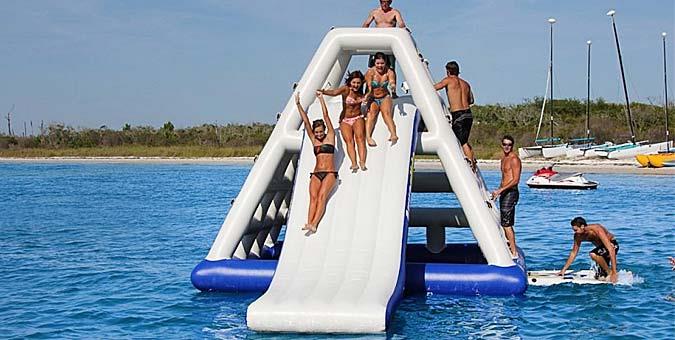 Φουσκωτό water park Τι; Εσείς να περιμένετε στην ουρά για μια βουτιά στις νεροτσουλήθρες; Όχι βέβαια. Σαφώς και θα δώσετε 7.999,99 δολάρια, ήτοι το ετήσιο εισόδημα του μέσου Έλληνα, για να έχετε την δική σας φουσκωτή τσουλήθρα.