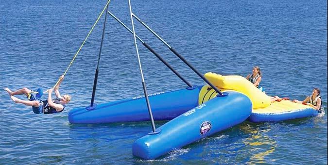 Πλωτή «κούνια» Τι να το κάνει κανείς το δέντρο, όταν μπορεί να κρέμεται από ένα σχοινί πάνω από τη θάλασσα, αρκεί να έχει και δυο-τρεις φίλους για αντίβαρο στο πίσω μέρος του φουσκωτού εκτρώματός του; Για να αιωρηθείτε άσκοπα πάνω από το νερό, θα χρειαστεί να πληρώσετε 3.800 δολάρια.