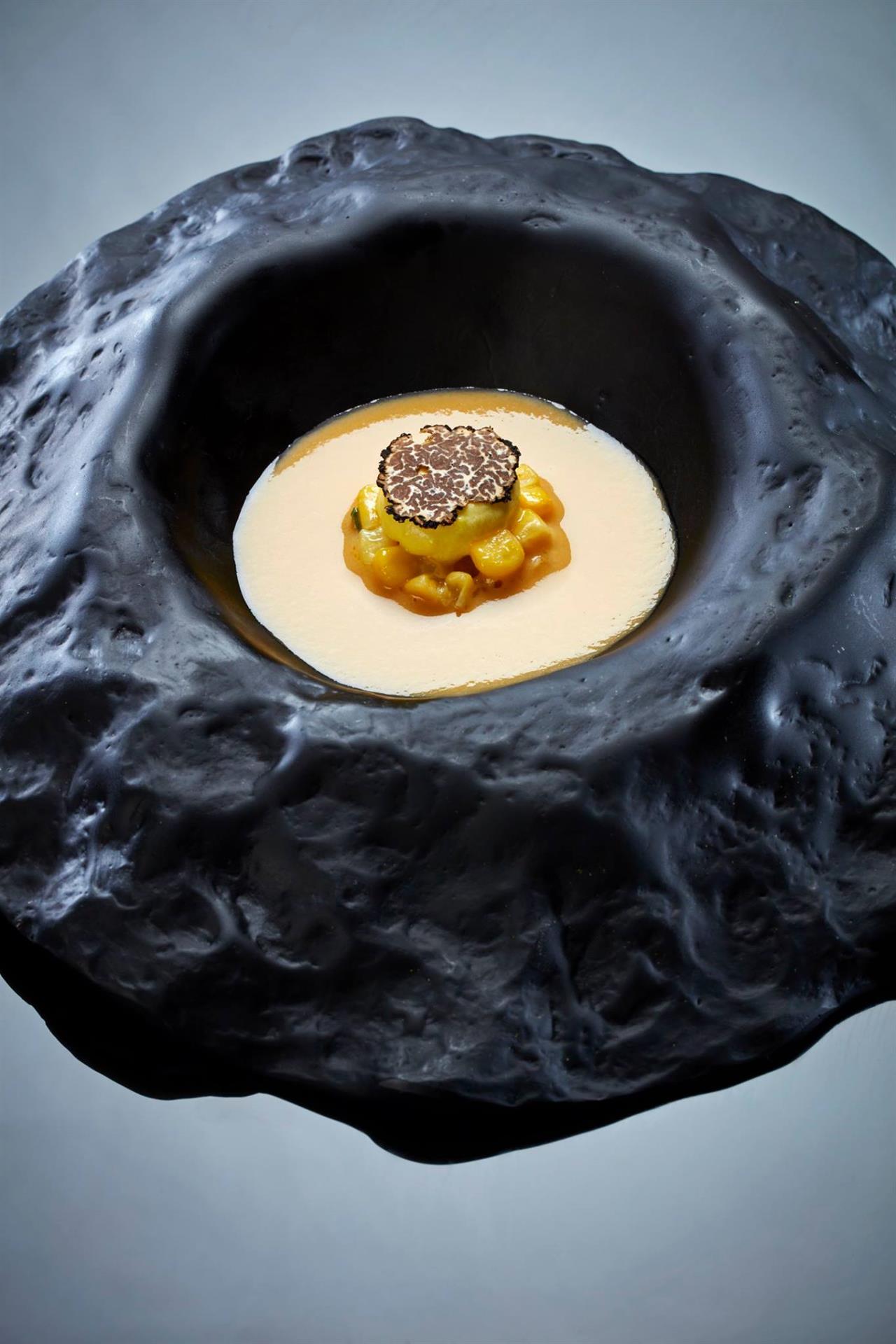 H βελουτέ καλαμποκιού του CTC. Το signature πιάτο στο εστιατόριο του Αλέξανδρου Τσιοτίνη φτιάχνεται με καλαμπόκι, αστακό και αφρό από τρούφα, αρωματίζεται με περγαμόντο και δικαίως παίρνει αστέρι Michelin.