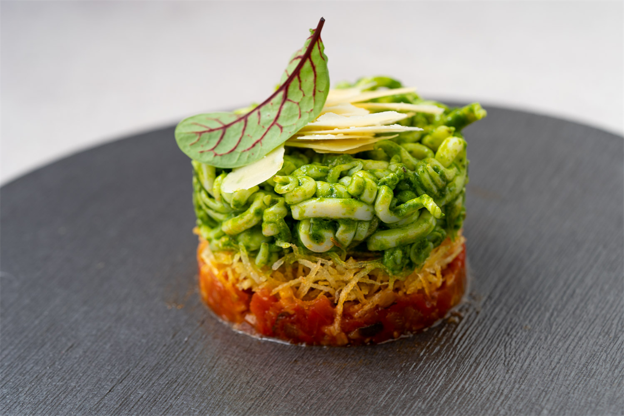 Το «Παστίτσιο» του Aleria. Το πιάτο του Γκίκα Ξενάκη παραμένει σταθερά στον κατάλογο του γκουρμέ εστιατορίου στο Μεταξουργείο και αποδομεί μοναδικά το ελληνικό comfort food: μαλακά μακαρόνια, μοσχαρίσια ουρά σιγομαγειρεμένη και μαδημένη, μανιτάρια σιτάκε και αφράτη, βελούδινη μπεσαμέλ.