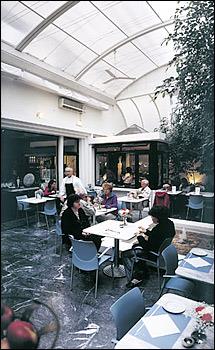Ένα υπέροχο, πλακόστρωτο και φωτεινό αίθριο ενώνει τα δύο κτίρια του Μουσείου Κυκλαδικής Τέχνης, το παλιό και το νέο. Στο κέντρο του, ένα μικρό σιντριβανάκι κοσμείται από το περίτεχνο κυκλαδίτικο ψηφιδωτό που φιλοτέχνησε η καλλιτέχνις Ζιζή Μακρή. Εδώ στεγάζεται και το χαριτωμένο εστιατόριο του μουσείου, που σερβίρει ελαφριά, μεσογειακά πιάτα, με εποχικά υλικά και την υπογραφή του γάλλου σεφ Ντομινίκ Περό. Για όσους προσέχουν τη σιλουέτα τους, υπάρχουν και πιάτα με λίγες θερμίδες. Μας άρεσε ιδιαίτερα η ανάμεικτη σαλάτα με χαλούμι ψημένο στη σχάρα και σως με βάση το μπαλσάμικο. Οι τιμές του μενού κινούνται στα πλαίσια των 15-20 ευρώ –επί παραδείγματι, η προαναφερθείσα σαλάτα κοστίζει 8 ευρώ.