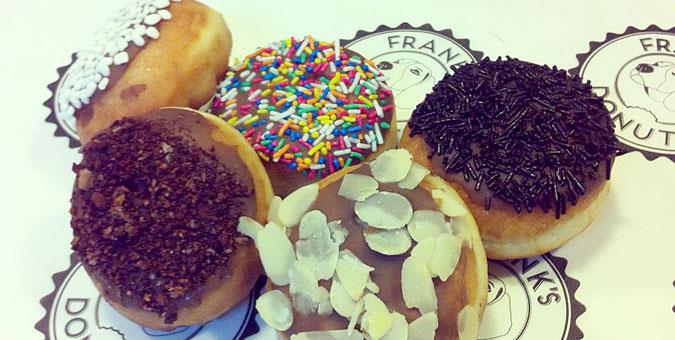 Franks Donuts Ξεκίνησαν τον Απρίλιο από το Χαϊδάρι και δεν άργησαν να εξαπλωθούν σε Πειραιά, Πέραμα και Ταύρο. Ολόφρεσκιες δημιουργίες καθημερινά, με αρκετές «καλοκαιρινές» προσθήκες όπως σοκολάτα- μπανάνα, American bitter με μαύρη σοκολάτα, γέμιση φράουλα και άχνη ζάχαρη, γέμιση με κρέμα Βαυαρίας, σοκολάτα γάλακτος, μπισκότο Oreo και γεμιστά με κρέμα λεμόνι. Έχουν και mini σε σακουλίτσες με πραλίνα φουντουκιού και κρέμα Βαυαρίας. Τα ατομικά κοστίζουν 0,60€ ανά τεμάχιο, τα mini 5€ το κιλό, ενώ βγάζουν και σακούλες με mixed mini donuts (3€/ 12 τεμάχια). Θα τα βρείτε ανοιχτά καθημερινές και Κυριακή από τις 19:00 μέχρι τις 21:30.