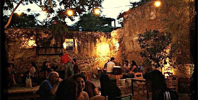 Cabezon Κεραμεικού 110, Μεταξουργείο Στο μεταίχμιο Μεταξουργείου και Γκαζιού, μια αυλή έφερε εναλλακτικό, χαλαρό αέρα στις παρυφές της πιο mainstream περιοχής, απλώνοντας τραπεζάκια κάτω από τα ψηλά χάντρα, στον στρωμένο με χαλίκι υπαίθριο χώρο. Εκεί θα πετύχετε και live βραδιές, με νότες από ακορντεόν ως και μπουζούκι για να συνοδεύσετε με ρεμπέτικους ήχους την φθηνή μπύρα (3€) και τους λαχταριστούς μεζέδες – εγγυημένη επιλογή τα κεφτεδάκια. Η παρέα που διαχειρίζεται το Καμπεθόν (που στα ισπανικά σημαίνει… κεφάλας) δείχνει ιδιαίτερη προτίμηση στα τοπικά προϊόντα – θα βρείτε μπύρες από ελληνικές μικροζυθοποιίες, ωραίο κρασί και πιάτα με υλικά από διάφορα μέρη της Ελλάδας.
